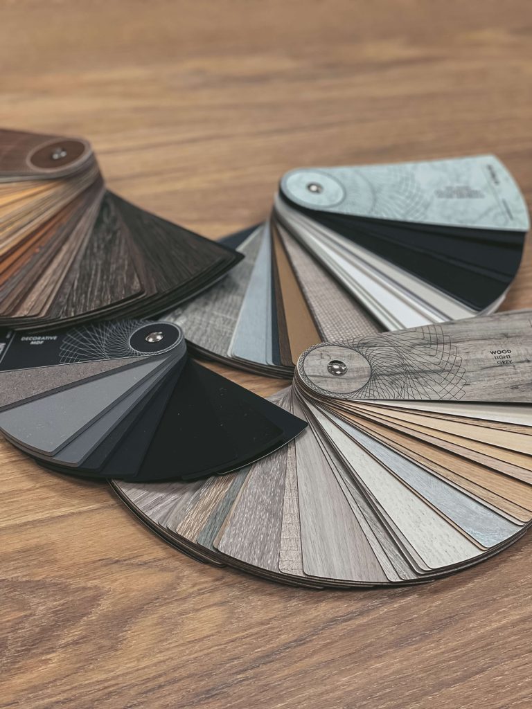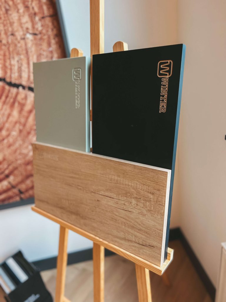 Materiaal- en kleurkeuzes, visuele combinaties van verschillende houtsoorten en bewerkingsvormen. Om het voorstellingsvermogen van de opdrachtgever zoveel mogelijk te ondersteunen beschikken wij in onze showroom over een rijk scala aan stalen en voorbeelden. Het maken van keuzes en het nemen van beslissingen is nu eenmaal prettiger als je het beoogde resultaat al een beetje voor je ziet.